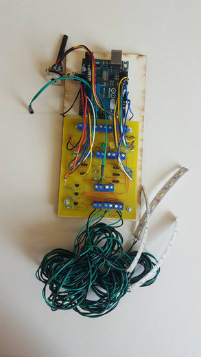 In the last quarter of my first year studies I had the choice to create something interactive I like. I had the idea to build interactive balloons. If a person is passing by the flying helium balloons, they light up in different colours with the help of the LEDs I placed inside the balloons. By the end of the quarter I had to pitch my work to my professors. I created the balloons with the help of my advanced processing skills and a good eye for design.